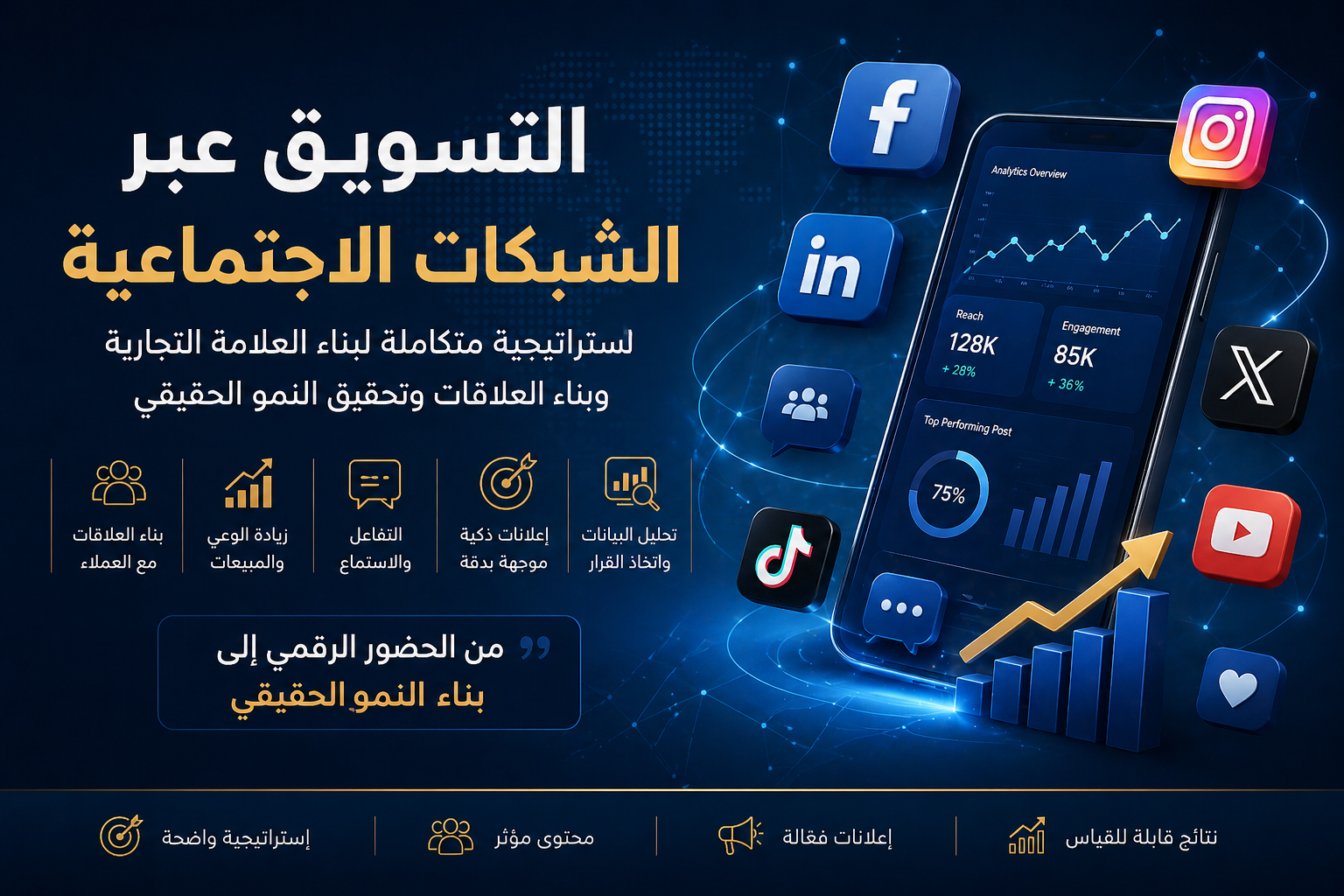 التسويق عبر الشبكات الاجتماعية (Social Media Marketing) هو استخدام منصات التواصل الاجتماعي لبناء العلاقات مع العملاء، وتعزيز حضور العلامة التجارية، وزيادة الوعي، وتحقيق أهداف تجارية واضحة مثل المبيعات، وجمع العملاء المحتملين، وتحسين تجربة العميل.