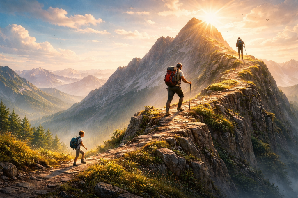 أشوف حياتي مثل متسلق جبل. من ولادتي حتى العشر سنوات أحبو على أرض مستوية، بعدها يبدأ الصعود الحقيقي. مرات أتعب، أو أتعثر، أو أطيح وأقوم وأكمل، ويمكن أصادف أماكن مناسبة للصعود تسهّل طريقي.