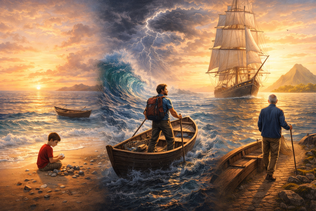حياتي تبدأ من الشاطئ. ألعب بالرمل، وأجمع الصدف والأحجار الغريبة حتى عمر الـ15 سنة. بعدها أركب القارب، أبحر، أجدف، وأصيد.